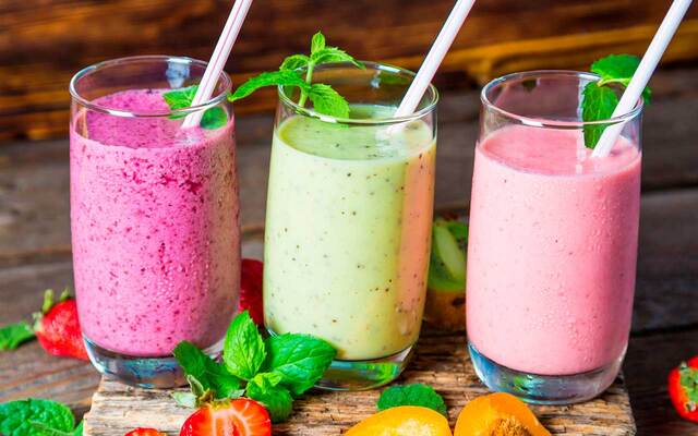 Shakes e smoothies para te manter refrescado e saudável em dias ensolarados, com misturas de frutas e outros ingredientes.